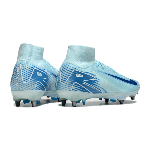 Con tacos mixtos SG , las Mercurial Superfly 10 Elite ofrecen una tracción superior gracias a la combinación de tacos fijos y extraíbles, lo que garantiza la estabilidad en campos mojados y terrenos irregulares. Realiza cambios de dirección rápidos y sprints seguros independientemente de las condiciones del terreno.