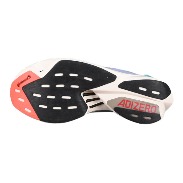 A thin, high-grip rubber outsole that provides exceptional traction on dry and wet surfaces, ensuring a secure and powerful toe-off during the entire race.